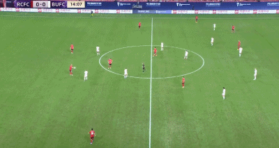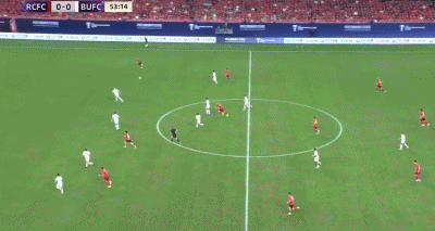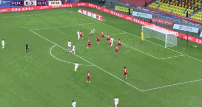 第90+3分钟,曼谷联头球攻门制造威胁,球高出横梁
