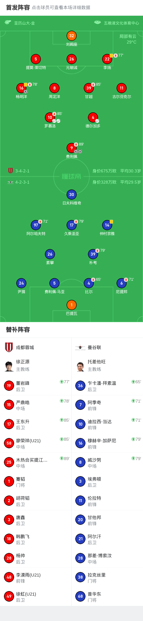 第70分钟,3分钟2球!第70分钟,费利佩单刀破门,成都蓉城2-0领先曼谷联!